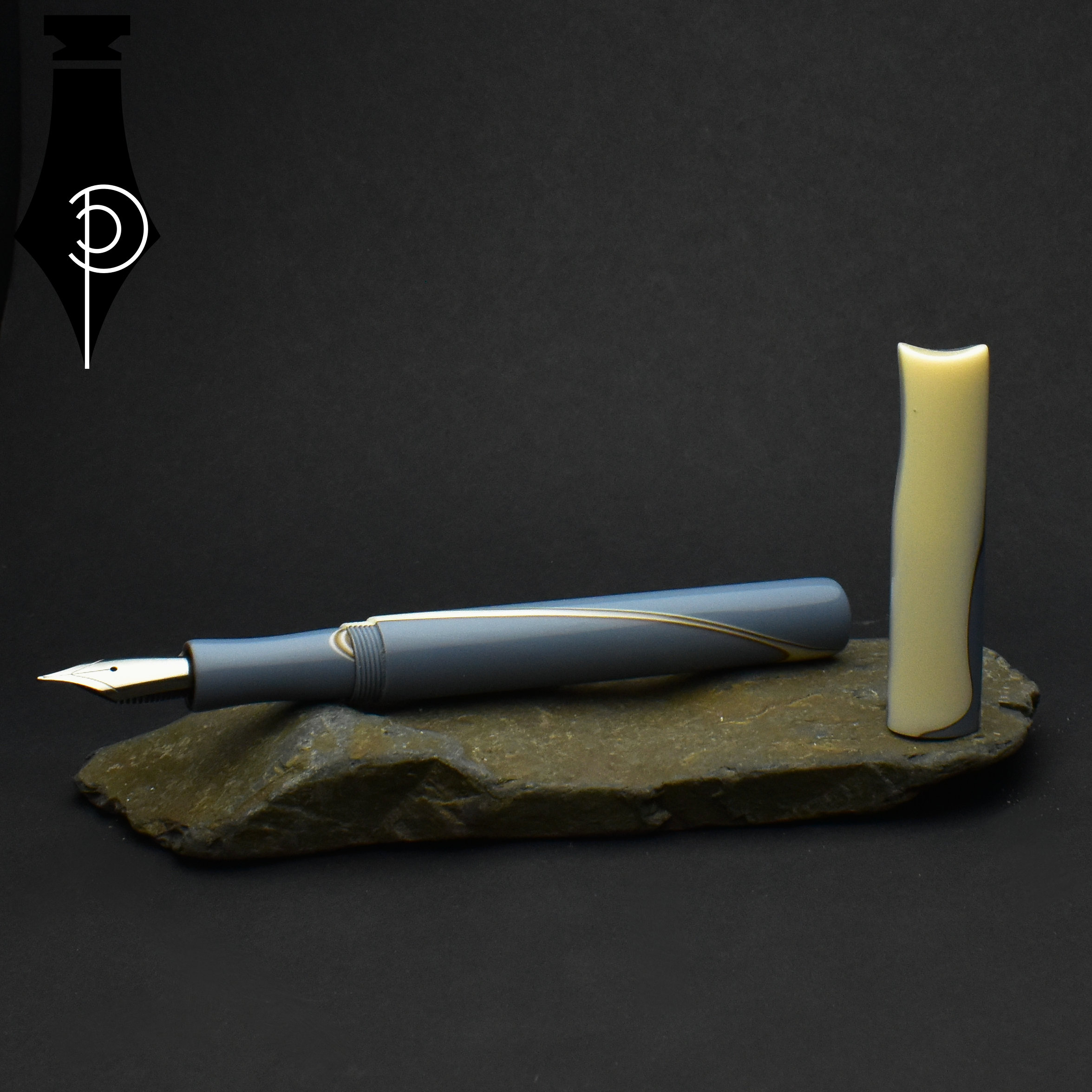 What can I say?! I absolutely love it!! The quality of the body is great โ it sits perfectly together with the threaded lid, and the cap posts perfectly without any wobble or slipping off. The nib is broad, and itโs lovely and smooth to write with. Den was brilliantโฆ He wanted to make sure that I was 100% happy and sent through an amazing selection of materials to choose from and design options with regards to the cap and the clip.